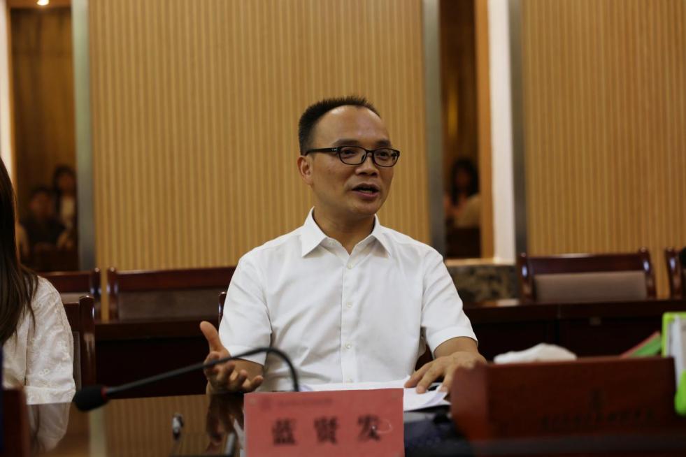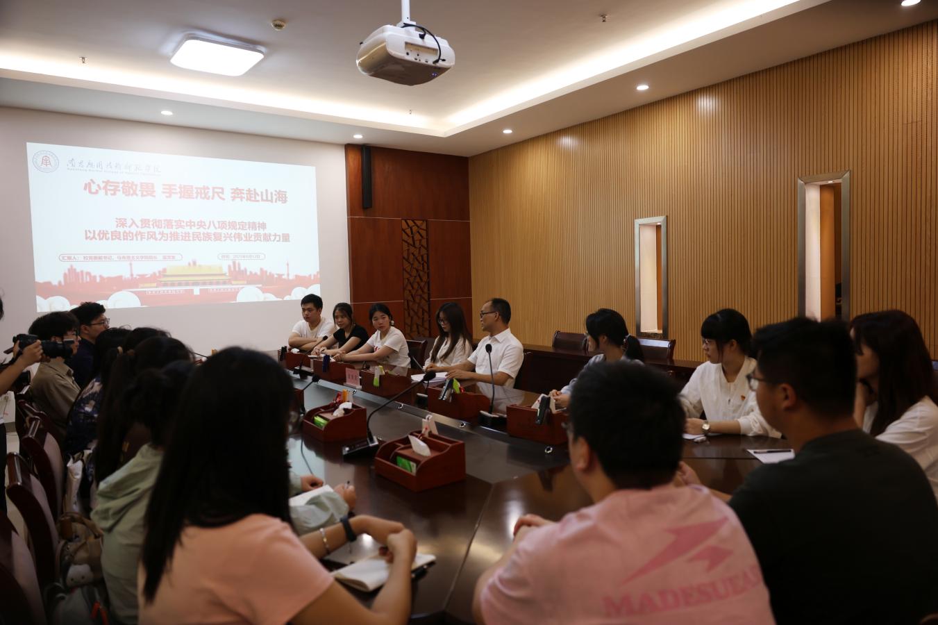 6月12日,校党委副书记蓝贤发以“心存敬畏、手握戒尺、奔赴山海”为题,为学校beat365中文唯一官网第二党支部党员讲授深入贯彻中央八项规定精神学习教育专题党课。
