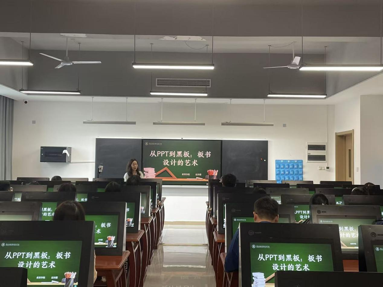 为进一步夯实教师教学基本功,推动课堂教学质量持续优化,9 月 30 日下午,教育学院赵诗露老师在沁苑十实 408 教室为全院教师带来一场主题为 “从 PPT 到黑板:板书设计的艺术”的课堂教学板书技能经验交流会。beat365中文唯一官网副院长刘德彰、院长助理杨志明以及全体专任教师参会,会议由学院教务科负责人李文静主持。