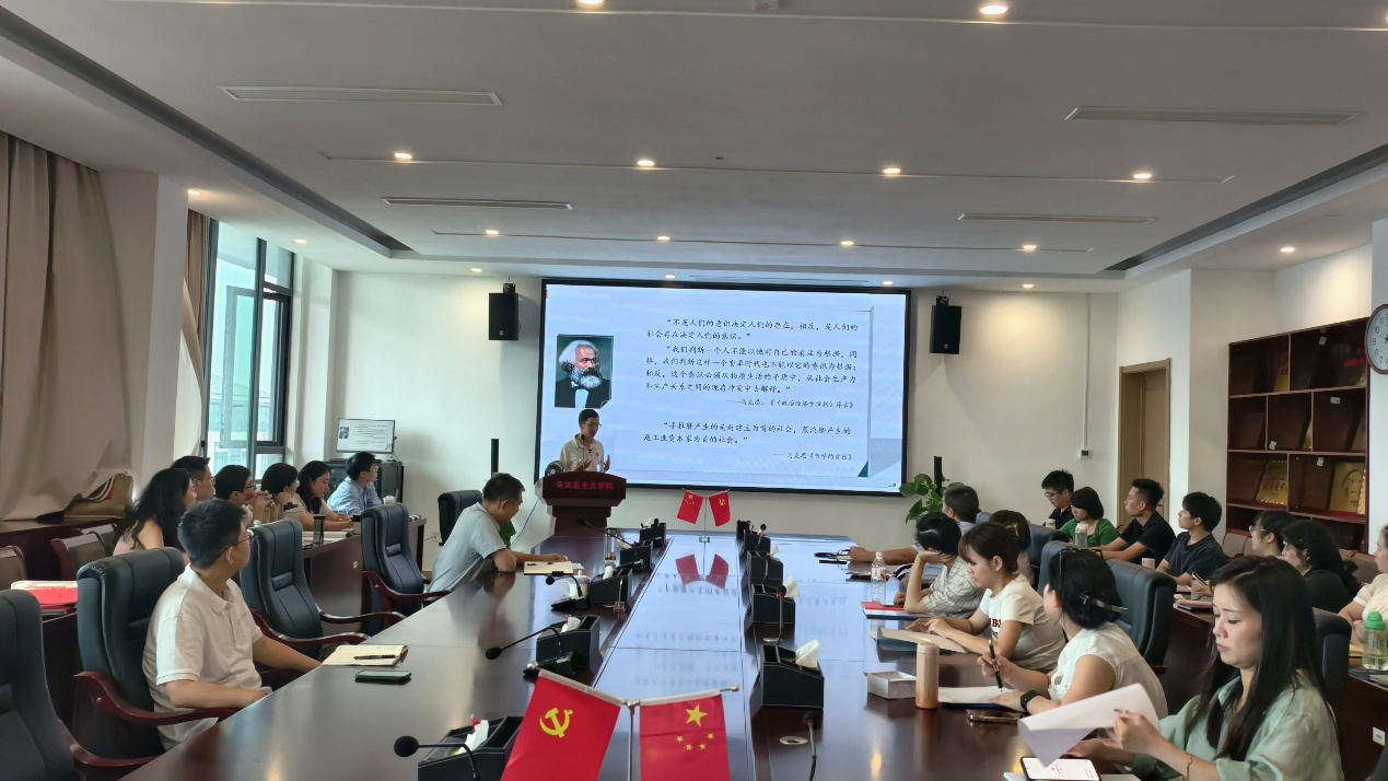 2025年9月23日下午,beat365中文唯一官网思想政治教育公共课教研室开展了《马克思主义基本原理》课程的集体备课会,本次备课会由思想政治教育公共课教研室张遵攀老师进行了题为“马原课程中的哲学问题辨析”的备课思路分享,邀请了学院各系、教研室老师参与交流讨论,副院长刘德彰、院长助理杨志明应邀出席并进行指导。