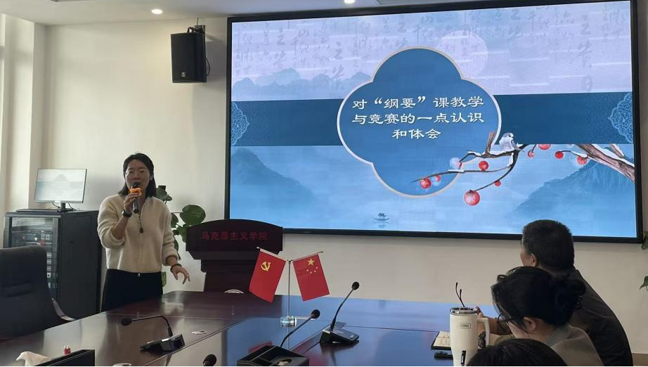 分享会上,戴瑞轩老师以“中国近现代史纲要课程参赛经验与教学创新实践”为主题,从“赛事解读、备赛策略、课堂设计、反思提升”四个维度展开深度剖析。她结合自身备赛历程,重点展示了如何将党史学习教育最新成果融入教学内容,通过“问题链导学+情境化教学+数字化赋能”的创新模式,打造有深度、有温度、有热度的思政课堂。其参赛课题《辛亥革命爆发的原因》因巧妙运用历史对比、案例解析与互动研讨,获得评委高度评价。