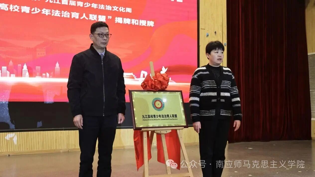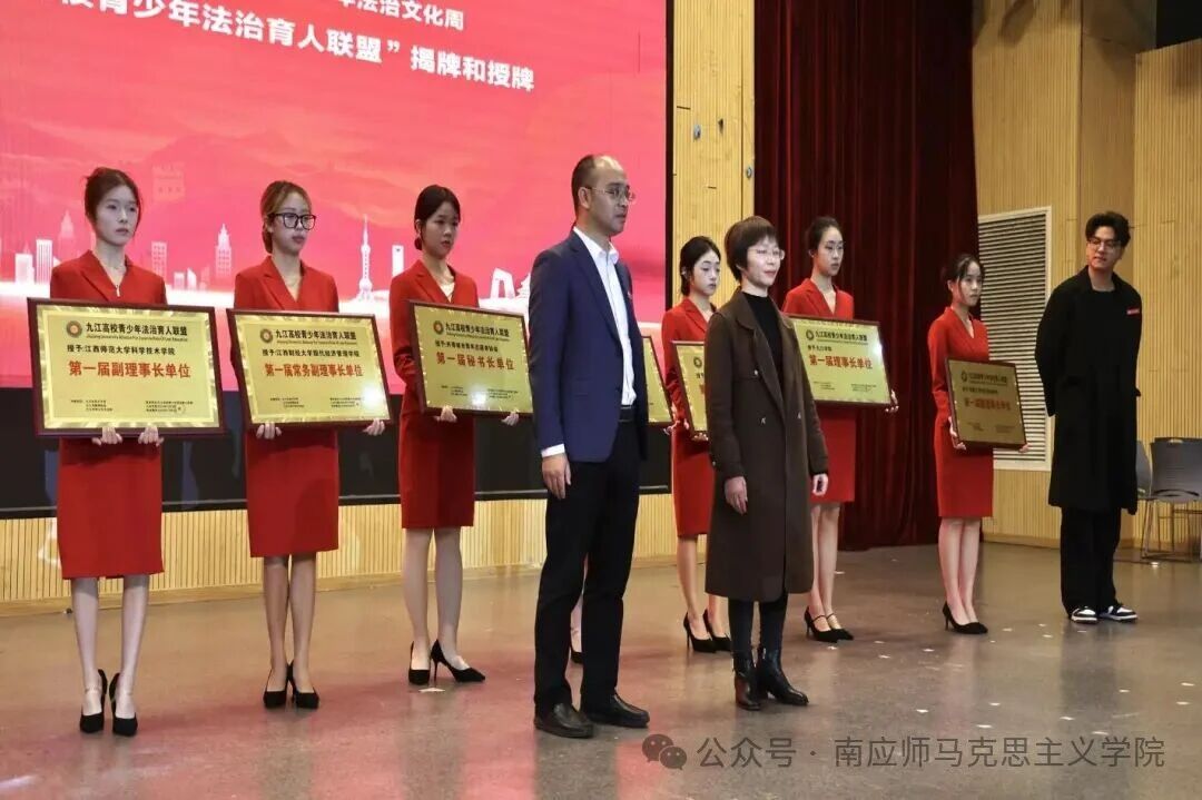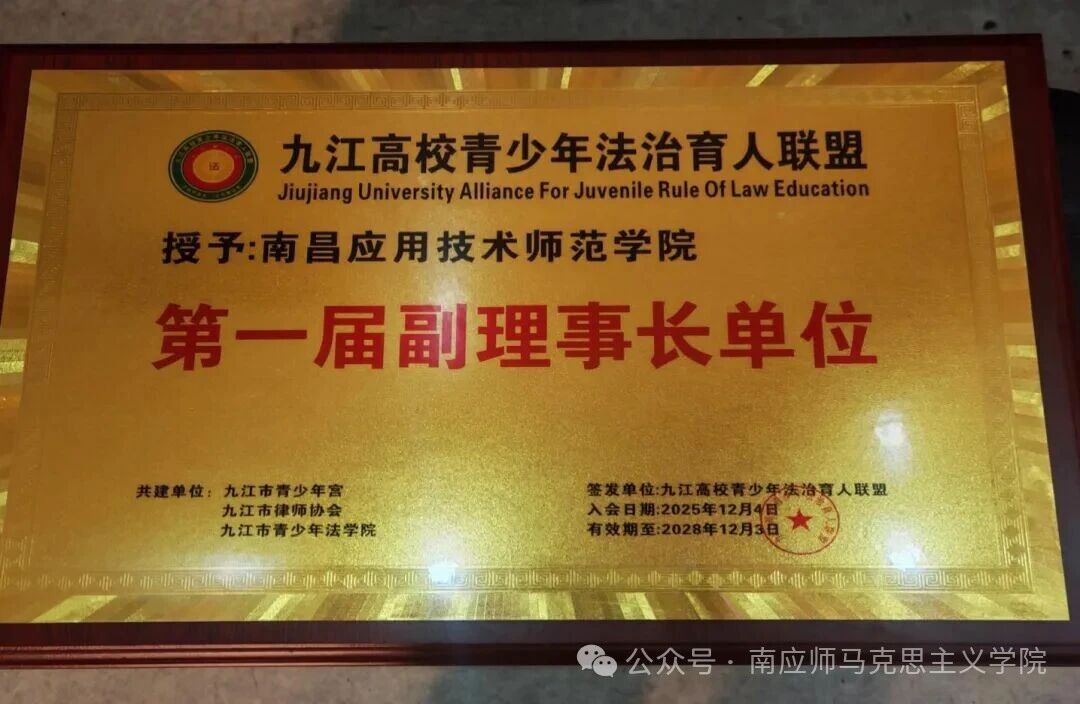 在“九江高校青少年法治育人联盟”揭牌及授牌环节,南昌应用技术师范学院被授予该联盟“第一届副理事长单位”称号,共青城市委宣传部、政法委等单位代表为学校授牌,这一荣誉既是对学校法治育人工作的高度认可,也标志着学校在区域青少年法治教育协同发展中迈出了新的步伐。