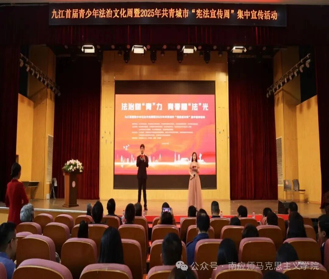 为深入学习宣传贯彻习近平法治思想,热烈庆祝第12个国家宪法日,扎实推进青少年法治文化培育,2025年12月4日,九江首届青少年法治文化节暨共青城市“宪法宣传周”集中宣传活动在江西财经大学现代经济管理学院明德楼101隆重启幕。